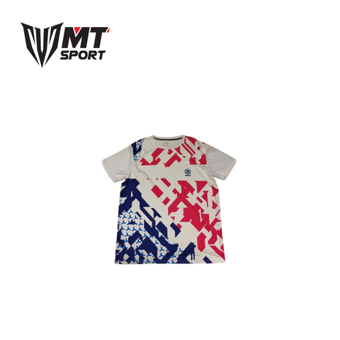 Áo cầu lông Protech nam trắng phối hồng xanh